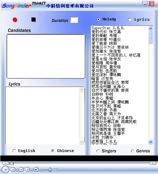用户只需要说出一句或几句歌词,即可为用户自动检索出查询的歌曲名称;音乐哼唱评分系统从演唱者的语音中提取出每个音符的音高和音长,和所唱歌曲的音高和音长进行比对,就可以知道演唱者音高和音长的准确程度,从而可以对演唱者的演唱水平给出一个初步的评价。