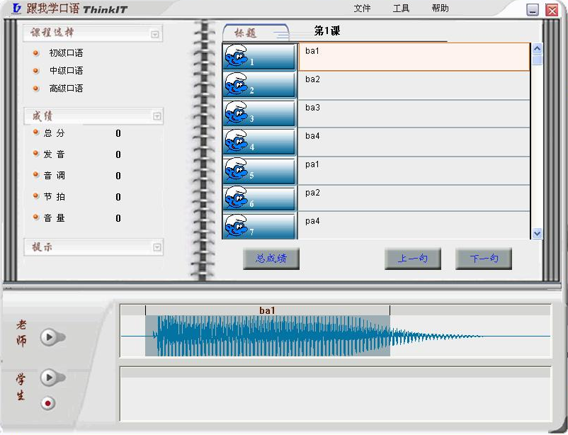 不仅能够评估学习者总体上的发音准确度,而且可以对学习者的每句话、每个词甚至每个音素进行评分;根据这些得分指出学习者发音不足的位置和方面,并提出改进的建议。