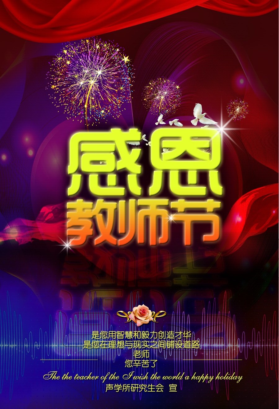值此五十周年所庆暨第三十个教师节来临之际,声学所研究生会谨代表全所研究生向辛勤工作在各级岗位上的老师们致以最诚挚的祝福,祝全所老师教师节快乐!祝各位老师身体健康,工作顺利!