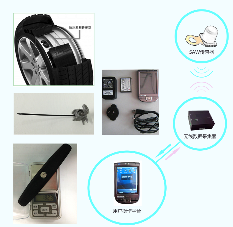 无源无线轮胎压力传感器(TPMS)的工作原理是,在轮胎的表面嵌入声表面波(SAW)传感器,通过石英压电晶体将压力信号转化为相应的响应频率信号,并在数据采集器频率的诱发下,返回响应频率,从而实时监测轮胎的压力。无线无源声表面波胎压传感器具有高速、实时性好、可靠性高。抗干扰、无需维护、寿命长等优点,具有广阔的应用前景。