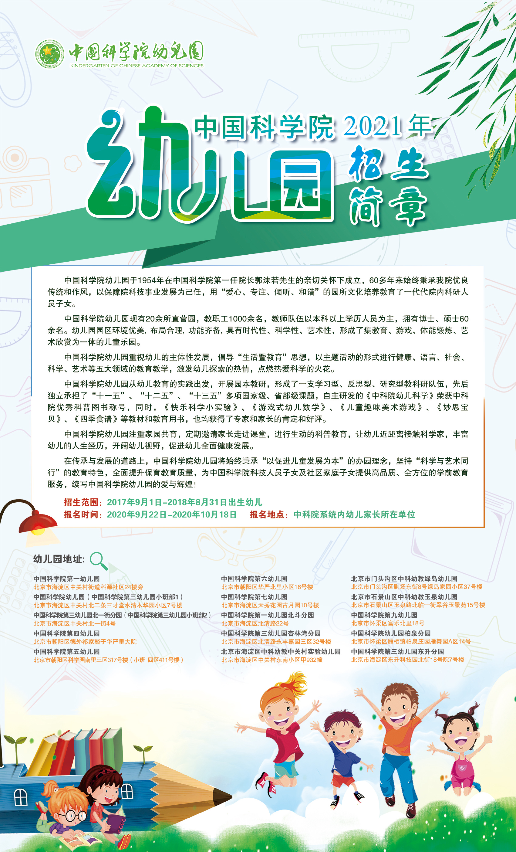 中国科学院幼儿园开始2021年入园预报名,现将有关事项通知如下。