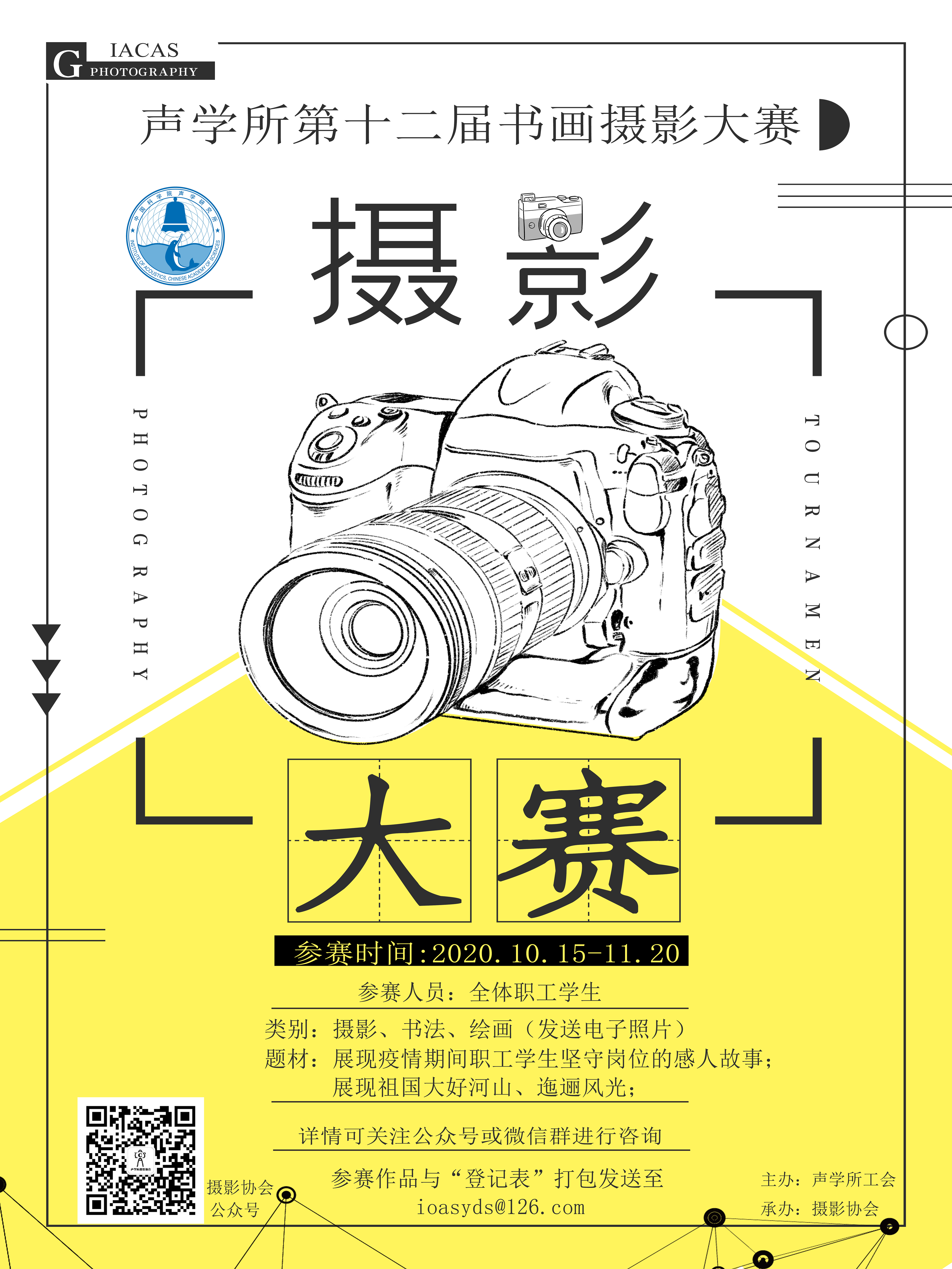 为深入学习贯彻习近平新时代中国特色社会主义思想,大力弘扬科学家精神,用镜头展现声学所人风采,提升广大职工科技创新自信,所工会、摄影协会将举办声学所第十二届书画摄影大赛。相关事宜通知如下: