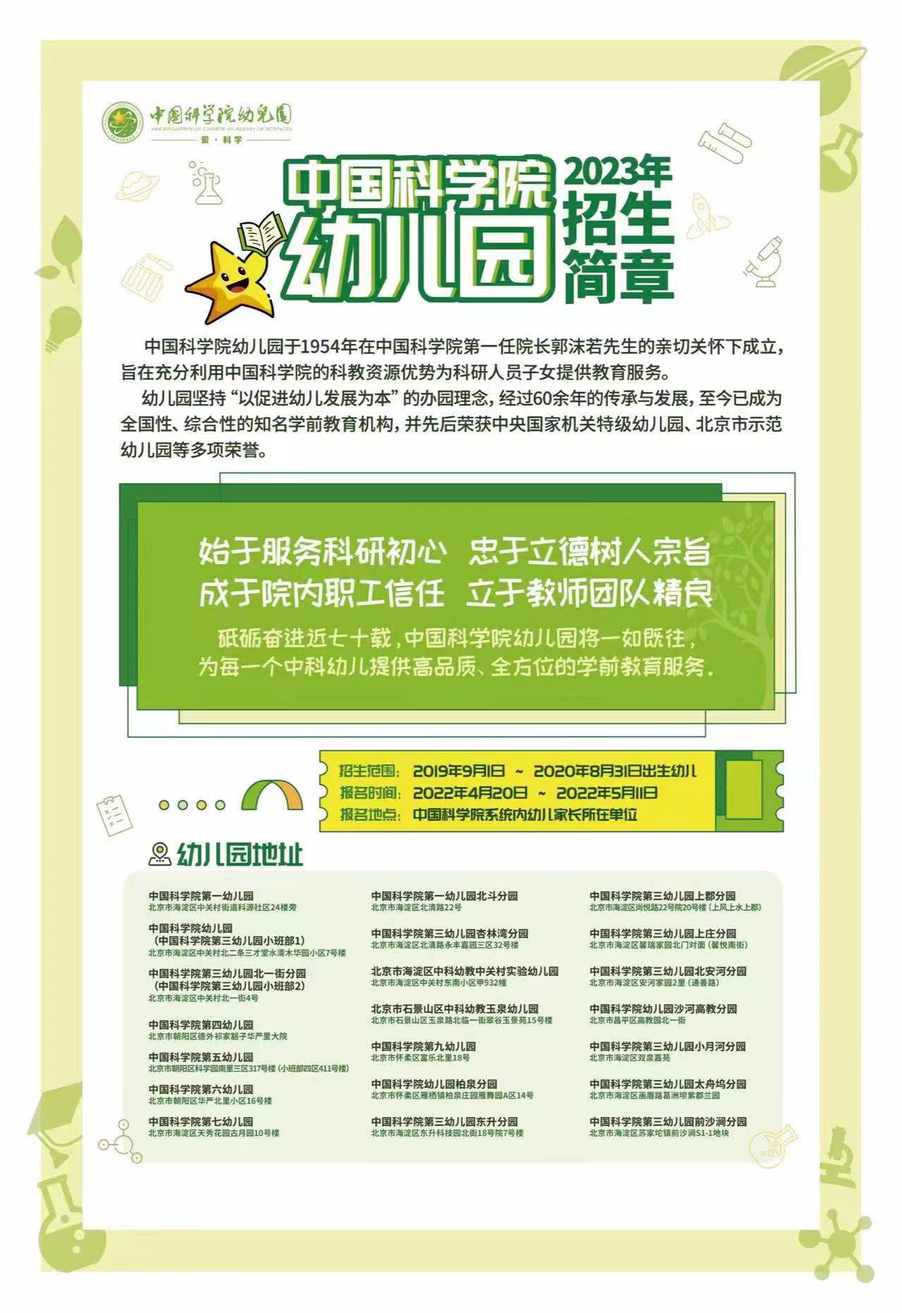 中国科学院幼儿园开始2023年招生预报名,现将有关事项通知如下: