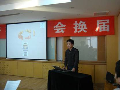 接着,第七届研究生会主席苏少炜同学做了题为“务实求新,勇于进取”的工作报告。苏少炜主席首先介绍了研究生会的概况,然后重点介绍了第七届研究生会的工作情况,从学术、文艺、体育、宣传、综合等方面回顾了过去的活动,在总结经验的同时对以后的工作提出了希望和展望,希望新一届研究生会能够在简报和与兄弟院所的交流方面取得进一步的成绩。