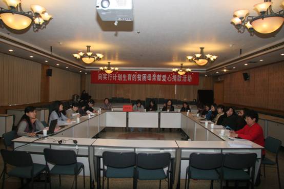 为了响应国家“开展幸福工程——救助贫困母亲行动”的号召,为了让全天下所有的母亲都能走出贫困,获得幸福,4月15日,声学所在DSP大楼四层多功能厅组织召开“向实行计划生育的贫困母亲献爱心”捐款动员会,号召全所职工向实行计划生育的贫困母亲捐款献爱心。会议由负责计划生育工作的杨丽同志主持,办公室主任周秀霞做捐款动员,全所各部门计划生育宣传员二十余人参加了会议。