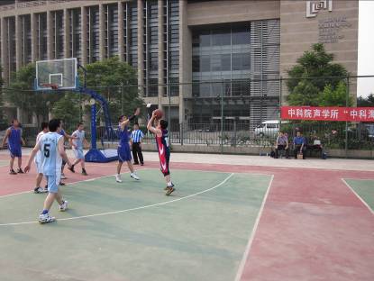 2010年6月7日星期一,烈日火辣辣的照着中关村体育场,却挡不住声学所篮球健将们的运动热情,筹备已久的2010年中科院声学所“中科海讯杯”篮球赛今天正式拉开了战幕。