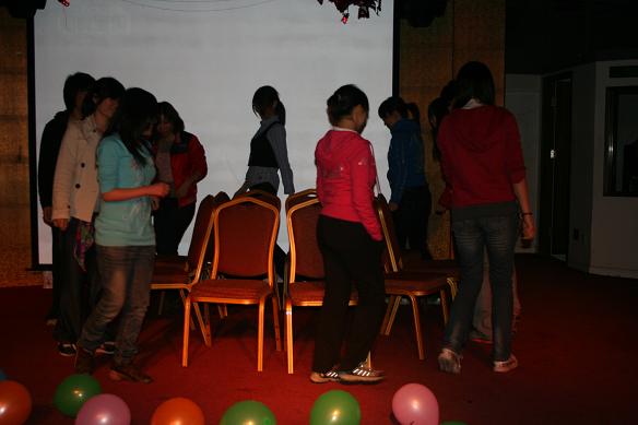 下午舒舒服服泡过温泉,晚饭后是集体联谊会。由于日常工作中,除了几个联系较多的部门,各实验室之间、实验室和各办公室之间的同事们接触的机会不是很多,为了增进彼此的交流,工会和妇委会的领导以及几位热情的同事们特意组织准备了这一联谊活动。活动中有多彩的游戏:击鼓传“花”、夹气球、心有灵犀。心有灵犀虽然是很多人非常熟悉的游戏,但是,题目都是针对女性的性格特点和生活喜好而精心挑选的,包括生活用品、品牌、化妆品日化品等,大家玩起来也格外紧张并快乐着。游戏重在参与,不论胜负,都不缺奖品,而且,所有的奖品在我们的眼中都是非常可爱又实用的。游戏之余,不论老师还是学生,都踊跃上台一展歌喉,有的嗓音高昂嘹亮,有的曲调清纯甜美,有的歌词调皮可爱,也偶有反串声的浑厚和有力。大家唱歌的热情很高,直至夜深了,最后几个离开的女孩儿仍一路快乐地哼唱着。