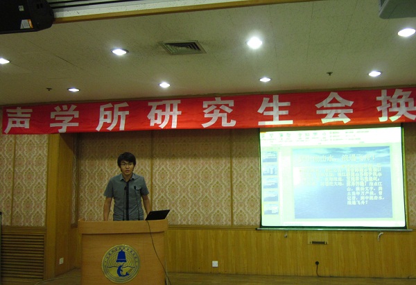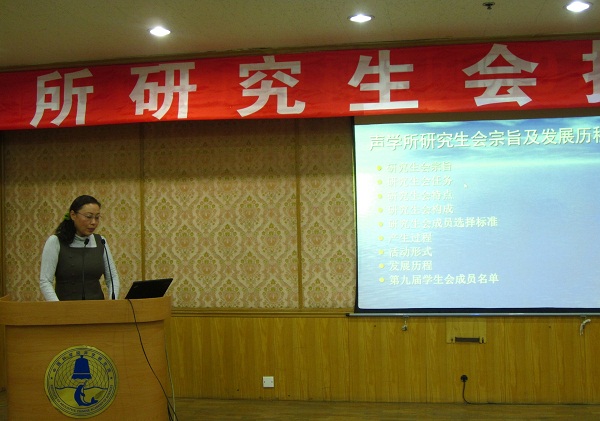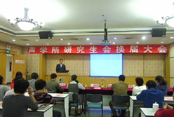 2011年10月12日星期三下午3点,声学所研究生会换届大会在DSP大楼多功能厅成功举行。出席此次大会的有马晓川副所长,人教处张云鹏、任小燕、李辉老师,团委书记崔杰老师,第八届研究生会主席蔡宇,以及兄弟院所的学生会代表和第九届研究生会成员等。