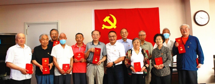 倪宏强调,在建党100周年之际,党中央首次颁发“光荣在党50年”纪念章,充分彰显了以习近平同志为核心的党中央对老党员的尊重、关心和爱护,也将进一步激励年轻党员不忘初心、奋勇前行。声学所的广大老党员、老同志是声学所发展的见证者、实践者、奉献者,声学所不会忘记每一位老同志的奉献。希望全所党员、职工弘扬科学家精神、传承红色血脉,不负韶华、接续奋斗。希望老党员、老同志继续关心、支持、帮助所里各项工作。衷心祝愿各位老党员身体健康、生活愉快。