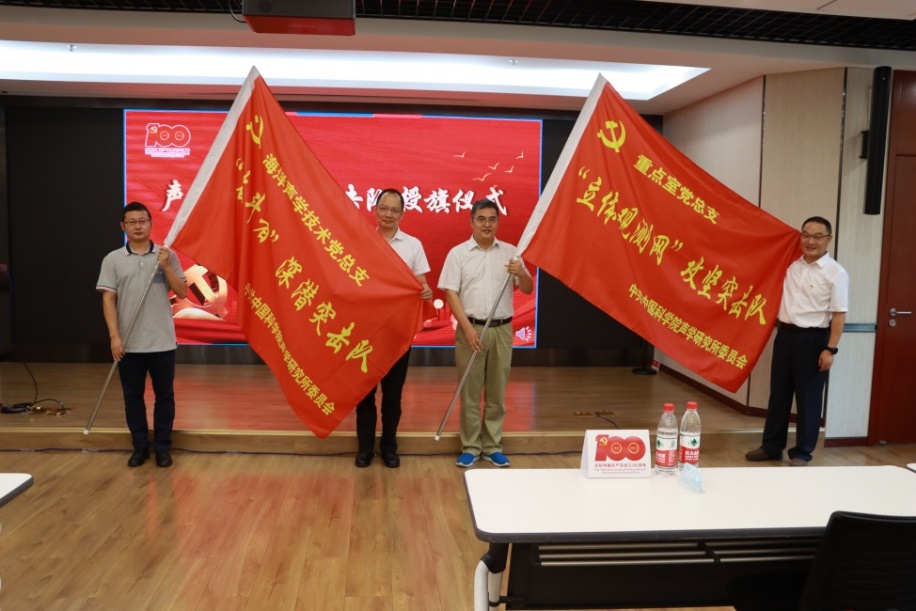 会上,举行了简朴而庄重的突击队授旗仪式。所长李风华、党委书记倪宏向重点室党总支“立体观测网”攻坚突击队、海洋声学技术党总支“奋斗者”深潜突击队授突击队队旗。“党旗在科研一线高高飘扬”是所党委开展党史学习教育部署的重点工作之一,在前期各基层党组织积极申报的基础上,结合承担关键核心技术攻关任务情况,所党委审议通过重点室党总支、海洋声学技术党总支成立突击队的申请。后续所党委将本着“成熟一个、授予一个”的原则持续推进。同时,针对我所外场试验多、时间长的科研特点,将成立以我所首任所长汪德昭院士冠名的突击队,以流动形式授予长期湖海试、外场试验等科研攻关团队,以激励不同研究单元团队奋勇争先。