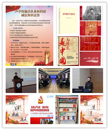 为进一步强化全所职工廉洁意识和科研诚信意识,声学所纪委在2021年第一季度开展了廉政党课、警示教育、知识竞答、建立廉政专题图书角等一系列党风廉政建设和科研诚信建设宣传活动。