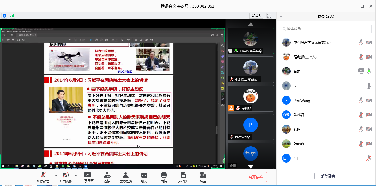 2020年6月10日至14日,按照所党委的工作安排和部署,超声技术党支部微机电与无损检测党小组、医用声学党小组和研究生党小组分别通过线上的形式开展学习贯彻习总书记给科技工作者代表回信精神主题党日活动。