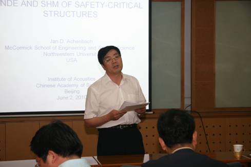 应超声物理与探测实验室邀请,国际著名科学家、国际《WAVEOTION》杂志的主编Jan.D.Achenbach教授携夫人于6月2日访问了声学所。
