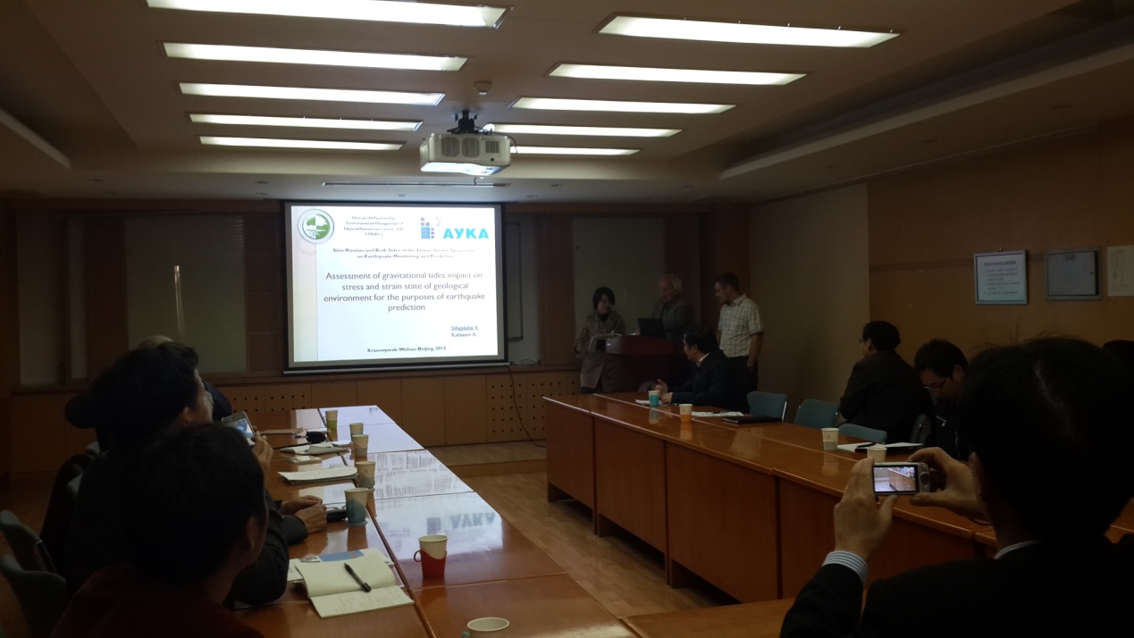 2013年10月23日,应中科院声学所通信声学实验室杨亦春研究员的邀请,俄罗斯科学院西伯利亚分院克拉斯诺亚尔斯克科学中心技术局资源环境管理中心主任V. Sibgatulin教授携两名地质地球物理学专家对本单位进行了访问,并参加了“中-俄地震地球动力学与监测预测学术研讨会”。同时参加会议的还有中国地质大学(武汉)原副校长杨蔚然教授、中国地质大学(武汉)博士生导师,湖北省地震学会副理事长曾佐勋教授以及台湾中正大学的两名教授。通信声学实验室李晓东主任参加并主持了会议。