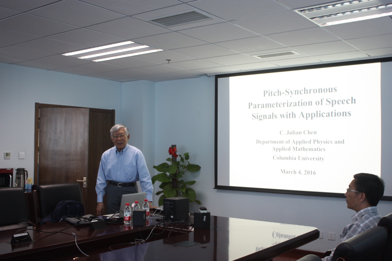 应院语言声学与内容理解重点实验室邀请,美国哥伦比亚大学应用物理与应用数学系资深研究科学家兼教授陈成钧于2016年5月4号访问声学所,并做了题为“基音同步语音参数化方法及其应用”的学术报告。