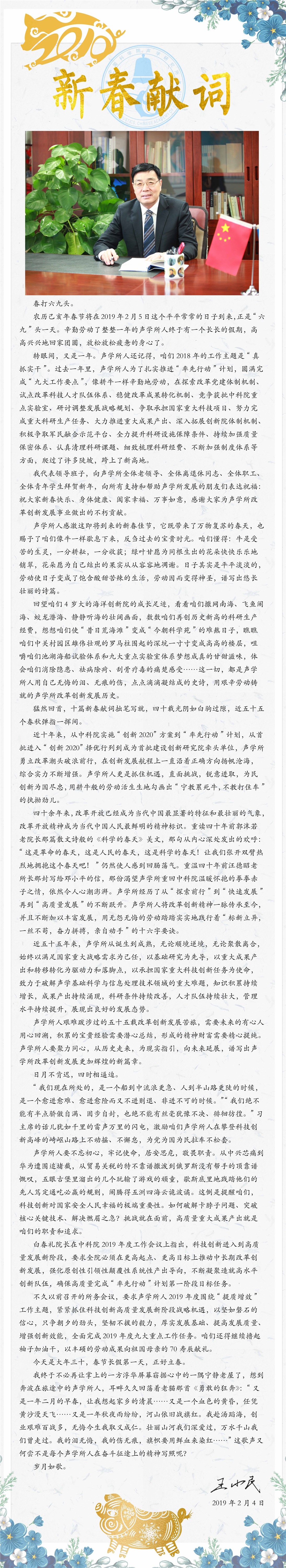 2019年所长新春献词