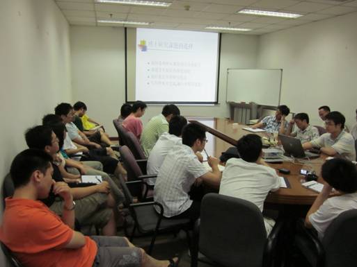 在座谈会上,首先是刘建师兄给大家介绍今年毕业生的就业情况。今年中心有10位博士4位硕士毕业,含两位联合培养博士生。就业单位主要是IT行业,腾讯、移动、数码视讯等,也有去银行工作的和去清华大学做博士后。刘建师兄也给我们介绍师兄们找工作的过程,从前期准备到投简历,从笔试到面试,详细的说明了在找工作的过程中要注意的事项,比如尽早做准备,多看一些找工作的必备书籍像《程序员面试宝典》、《数据结构》等,当然更重要的是目标定位要准确,才能有针对性的做准备。