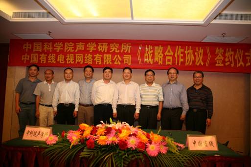 中国科学院声学研究所(简称声学所)与中国有线电视网络有限公司(简称中国有线)自2006年就开启了合作之路,双方先后合作完成了国家广电总局下达的“有线数字电视整体转换模式的建立”和“IP电视技术在HFC上的应用研究”任务,分别获得了2009年度广电总局科技创新奖一等奖和三等奖,并在“十一五”联合承担完成了国家科技支撑计划重点项目“中国互动新媒体网络与服务科技工程”、国家863计划重大项目“新一代高可信网络”的相关课题,在海南完成了许多具有示范意义的工作,“十二五”期间将继续在国家863计划重大项目、中科院战略性先导科技专项和重点部署项目中开展合作,双方拥有十分广阔的合作前景。