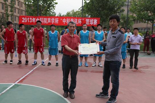 2013年5月22日星期三,经过十几天近三十场比赛的拼杀,中科院声学所2013年度“中科海讯杯”篮球赛进入决赛阶段。在最终的比赛中,噪声与通信联队以49:47战胜数字系统获得季军,网络新媒体以51:35战胜机关联队获得冠军。