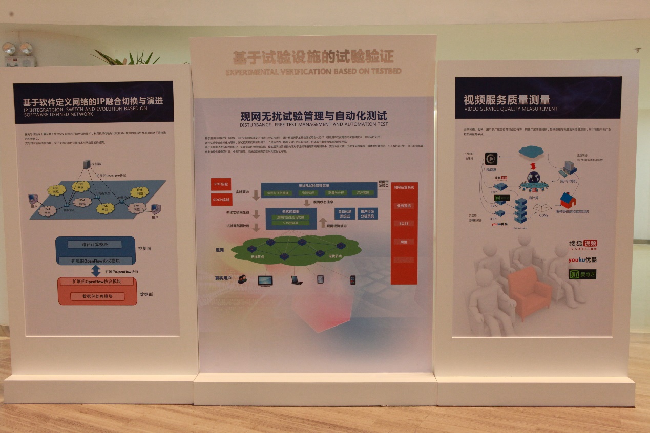 开通仪式上,先导试验网向公众演示了“未来网络技术研究”、“未来网络特性测量”和“现网无扰试验”等方面的六个代表性实验。其中,“服务质量测量”和“无扰验证试验与测试”两个实验,是中科院声学所国家网络新媒体工程技术研究中心代表课题组进行的技术成果展示。