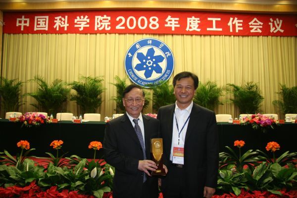 3月24-26日,中国科学院2008年度工作会议在北京举行。在26日下午的闭幕式上,对获得2007年中国科学院杰出科技成就奖的个人和集体进行了表彰,声学所声场声信息国家重点实验室获得2007年中国科学院杰出科技成就奖(集体)。全国人大常委会副委员长、中国科学院院长路甬祥向获奖个人和集体颁奖,张仁和院士作为获奖代表领取了奖章和奖杯。