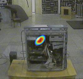 程序根据所测声源点的亮度和斑纹大小,自动搜索式地调点对该点附近的聚焦,达到使聚焦点声音幅值最高,该点中心亮度最高。可对多个声源分别调节。