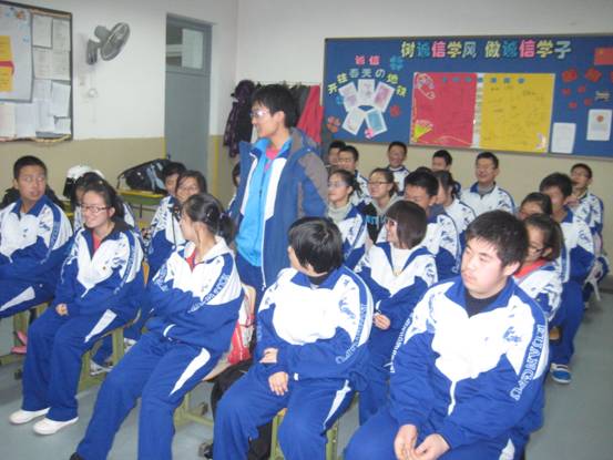 2010年11月26日下午,中科院声学所微弱信号检测与处理支部支部书记田甜、党员张志博、冯师军和入党积极分子靳晓宁一行四人来到北京矿院附中高一一班,参加了我支部与矿院附中联合开展的“一帮一”学习交流及科普座谈会。这项旨在由一线科研人员向中学生介绍学习、生活经验以及科普知识的合作计划也由此拉开了序幕。