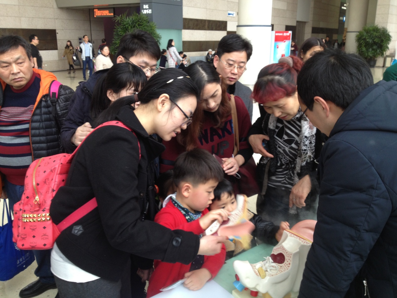 这热闹的场景便是东海站“把声音带回家”系列科普活动走进上海科技馆的活动现场。东海站以超声清洗、超声乳化、超声雾化等一个个神奇的声学互动与广大市民游客进行了“零距离”的亲密接触,同时结合“保护听力·从我做起”科普小讲台活动为来访受众讲解了耳朵的秘密,活动吸引了千名公众参与,人气十足。