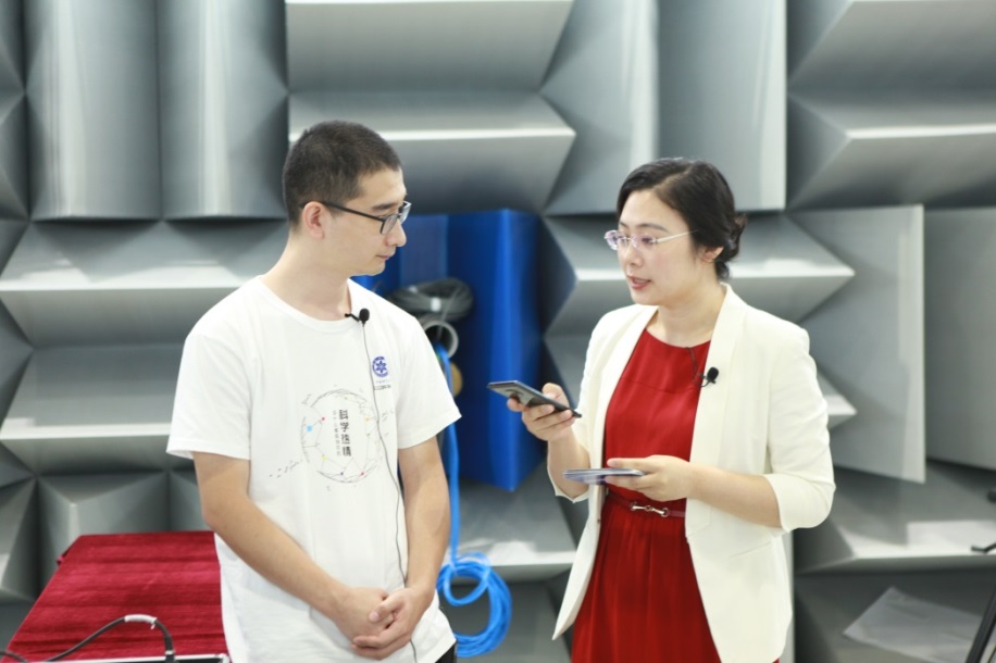 5月23日上午9点40分,“云游声学所”线上直播活动拉开帷幕,直播采用青年科技专家演示实验、答疑等方式科普声学科技知识。四位青年科学家通过精彩的实验演示,分别介绍了把声音变成图像的声像仪、利用喇叭降低烦恼噪声的有源消声器、外科大夫的手术利器——超声手术刀和无线无源的声表面波温度传感器,讲解其中的科学原理,揭开这些神秘声学仪器的面纱,并通过互动问答把直播气氛带向了高潮。西瓜视频、抖音、今日头条的观众看完50分钟的直播纷纷留言,要向科学家看齐,勤学好问,发现生活,善于创造,创新思路。中午12点半,声学所特邀北京电视台融媒体团队进入混响室、半消声室开展现场直播,体验趣味声学实验,一起探索声音的奥秘,持续1小时的直播节目在北京时间等15个网络平台实时播出。两场直播活动的播放量超过34万。