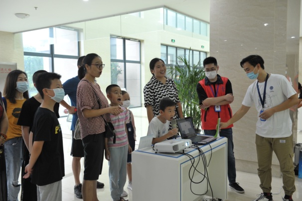 在科普讲座和科教片放映教室,科普导师给大家带来了《你了解什么是声音吗?》互动型科普讲座,从“什么是声音”“声音的产生与传播”“声音的特征”“声音的应用”等四个方面深入浅出地剖析了声音的奥秘,引发小朋友们积极思考、踊跃互动。与此同时,科教纪录片《声音科学》《人工耳蜗》和科普动画片《丈量大海》《倾听地震的隐秘脚步声》《中国蛟龙怎样炼成“千里传音”》等不间断放映,吸引了众多小朋友聚精会神地观看,让孩子们在轻松愉悦的氛围中收获知识、收获成长。