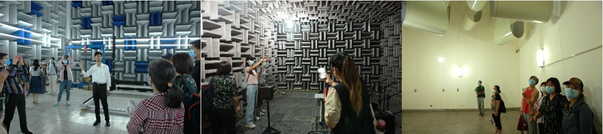随后,在声学所综合办公室副主任周城光带领下,老师们走进半消声室、全消声室和混响室,听取声学所科研人员对三个实验室的讲解介绍并亲身体验了三种不同的声学环境。
