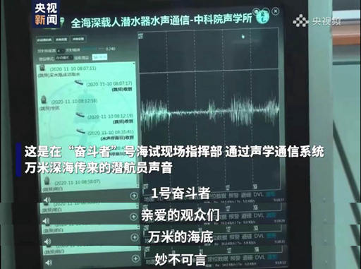 “奋斗者”号从马里亚纳海沟传回的潜航员语音(图片来源:央视新闻)