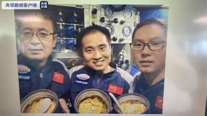 “奋斗者”号从马里亚纳海沟传回的潜航员照片(煎蛋+炒面,看着就香)(图片来源:央视新闻)
