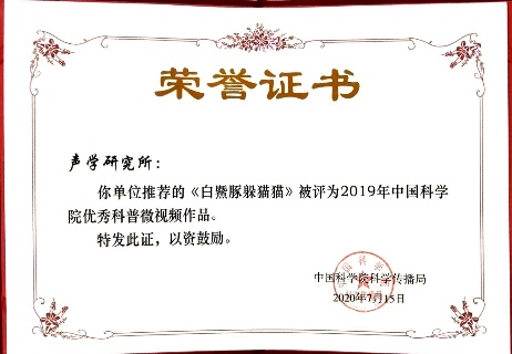2021427日至28日,中国科学院科学传播局召开2021年全院科普工作培训会,表彰了中科院“十三五”科普工作先进集体和先进个人,声学所王荣泉同志获先进个人荣誉称号。