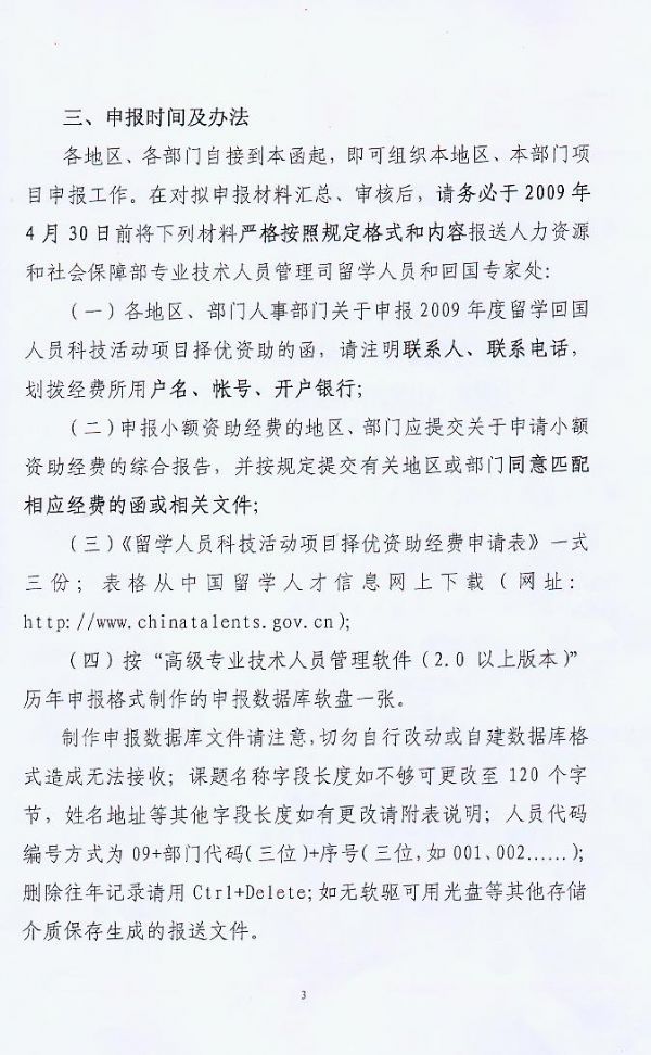 根据人力资源和社会保障部《关于申报2009年度留学人员科技活动项目择优资助经费的函》(人社专技司函[2009]7号)文件精神,人事教育处将组织申报工作,详细内容见所网通知公告栏。