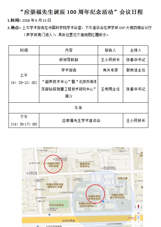为缅怀应先生对我国声学事业与声学所的发展做出的卓越贡献,追思学习他严谨创新的科研精神和朴实无华的崇高风范,激励我们不忘初心、牢记使命,中国声学学会与中国科学院声学研究所暨海洋信息技术创新研究院将于6月 15 日共同举办“应崇福先生诞辰100周年纪念活动”。