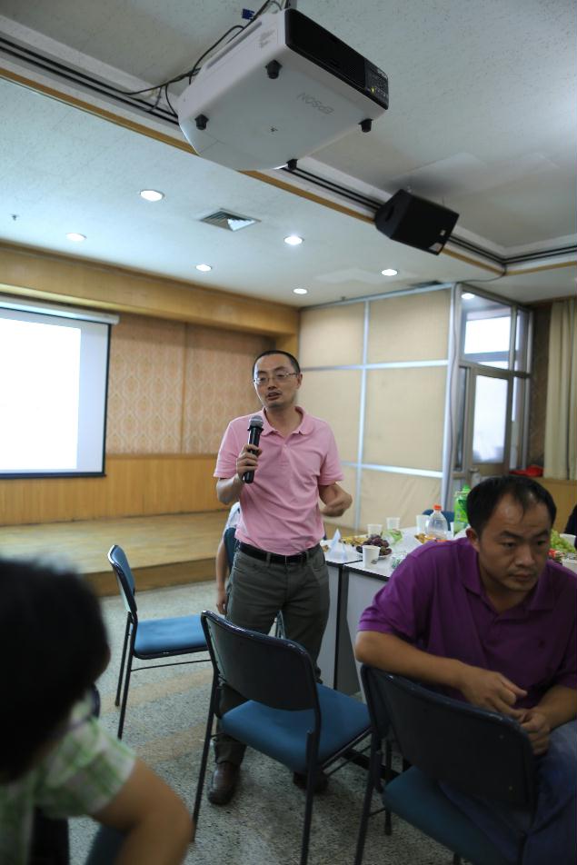 在杨老师的发言结束之后,进入了各位新老生的自我介绍环节,有趣的是,各位老师在最后也都分别做了一次自我介绍,完全和学生们打成一片,气氛被推向高潮。程晓斌老师在发言中向各位研究生分享了自己的科研心得,他认为科研工作不要怕遇到困难,遇到困难也不要第一时间去求助别人,必须要学会自己努力解决困难,因为在这个过程中你将能学到很多东西。