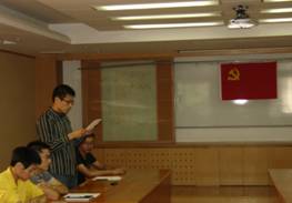 2012年09月05日,噪声与振动支部在德昭南楼218举行了党支部大会,共同讨论胡笑浒同志、钱中昌同志的入党积极分子转预备党员问题,以及刘增军同志、袁旻忞同志的入党转正问题。本支部共有党员29名,其中正式党员27名,预备党员2名。共有22人出席本次支部大会,包括正式党员18名,预备党员2名,入党积极分子2名。会议由支部书记白国锋同志主持,并且邀请党委委员李淑秋同志参加及指导工作。