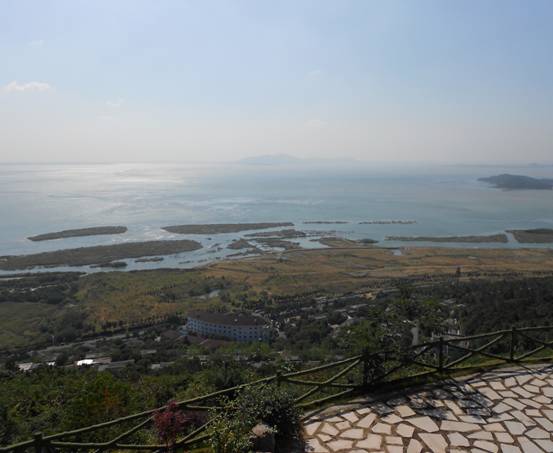 渔洋山最大的亮点是欣赏太湖风光。乘坐观光车上山,沿途欣赏太湖春色美景。三山岛、漫山岛、冲山岛犹在脚下,一幅太湖山水画廊一览无余。大家都感到豁然开朗,心旷神怡,对眼前的山水美景啧啧称赞。上山后登上可容纳千人的渔洋阁,渔洋阁内有6吨的玉雕龙鳌,大型的漆雕画和大型的瓷器版画,这些艺术作品凸显了文化太湖的魅力。老同志们登高望远,在渔洋阁放眼俯瞰,东山的莫厘峰、西山的飘渺峰、光福的邓尉山、玄墓山、穹窿山如在咫尺,尽收眼底。远眺自然风光,近看艺术珍品,老同志们有的拍照留影,有的三五成群驻足聊天,还有的对着艺术珍品细细观赏,在大自然营造的巧夺天工的艺术美景中流连忘返,悠哉悠哉……
