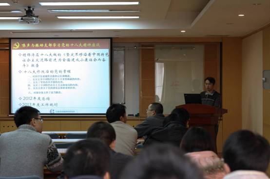 首先,白国锋同志传达了所党委关于学习十八大精神的动员,强调了深入学习、宣传和贯彻党的十八大会议精神的意义,提出了支部党员要深入学习、全面领会党的十八大精神的要求。