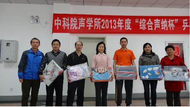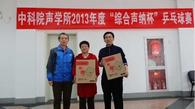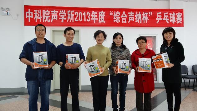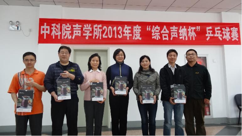 2013年4月19日,2013年声学所“综合声纳杯”乒乓球赛在声学所职工活动中心圆满落幕。所工会职代会主席李平、综合声纳实验室副主任刘纪元以及所务助理、所工会职代会常务副主席周秀霞出席了闭幕式。