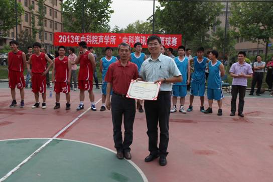 2013年5月22日星期三,经过十几天近三十场比赛的拼杀,中科院声学所2013年度“中科海讯杯”篮球赛进入决赛阶段。在最终的比赛中,噪声与通信联队以49:47战胜数字系统获得季军,网络新媒体以51:35战胜机关联队获得冠军。