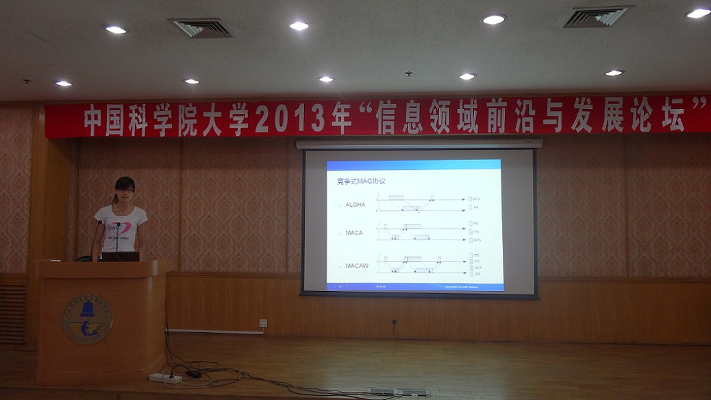 经过短暂的休息后,参加“信息领域前沿与发展论坛”的优秀学生依次上台做了精彩的学术报告,报告涵盖水声通信,水声信号处理,语音信号处理和网络技术等多个方面,促进了学生间的学术交流。