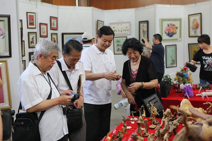 中科院党组方新副书记、离退休干部工作局孙建国局长、李杰副局长观看根雕作品
