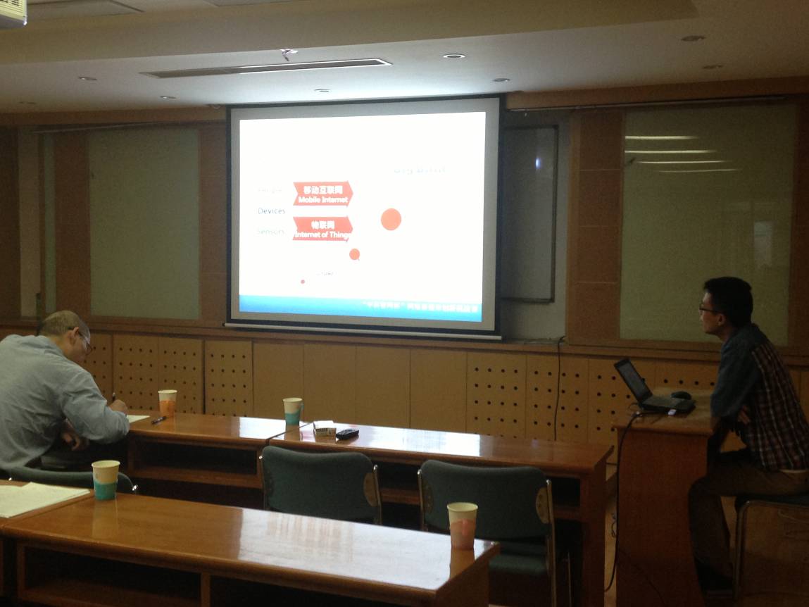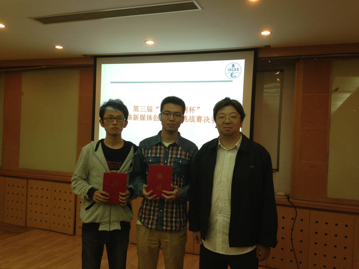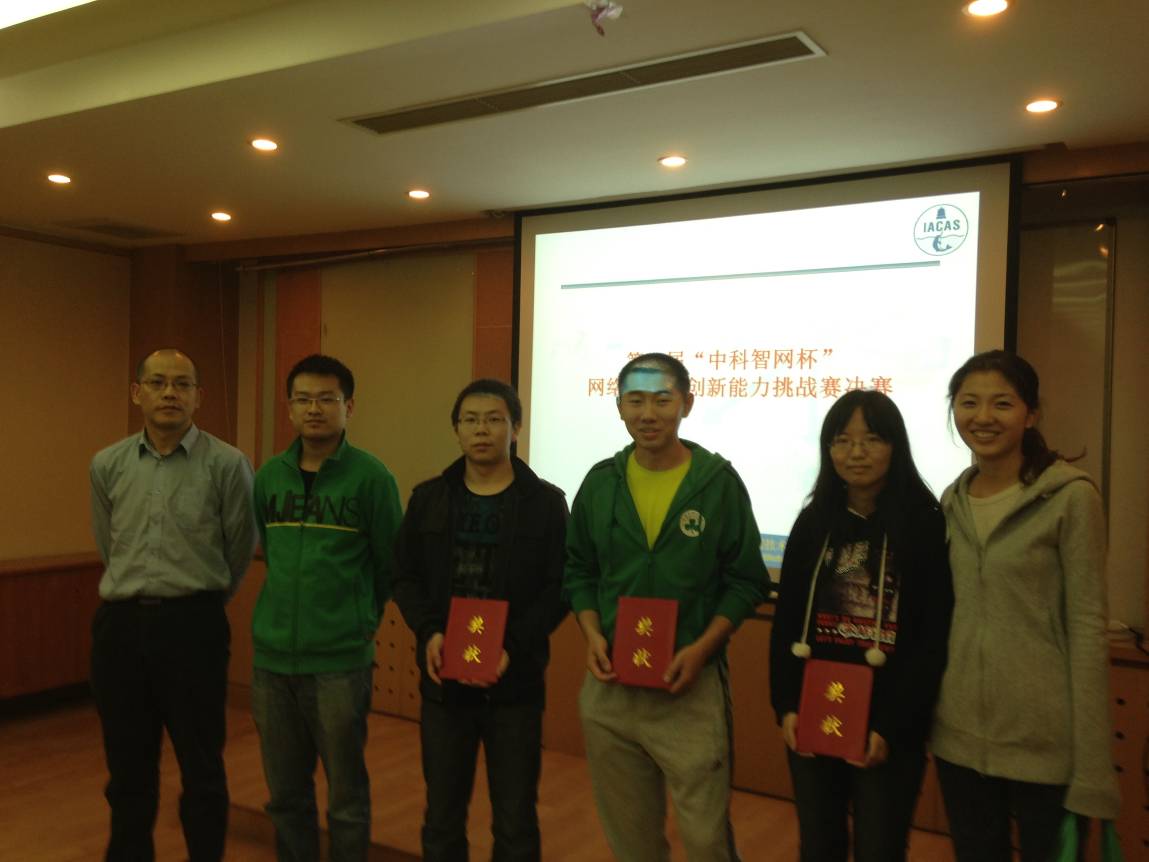 2013年9月29日下午,中科院声学所第三届“中科智网杯”创新能力挑战赛决赛答辩在德昭楼218会议室顺利举行。国家网络新媒体工程技术研究中心副主任邓浩江研究员、赞助商中科智网科技有限公司产品事业部总监潘梁以及组委会的专家出席了本次会议。