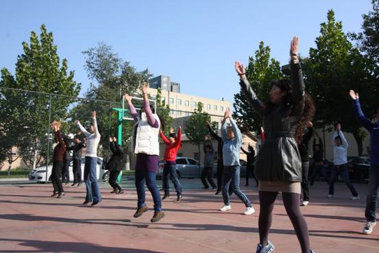 为了更好的普及第八套广播体操,同时活跃实验室工作学习氛围,超声实验室分工会于10月25日组织号召室内全体职工及学生学做标准的第八套广播体操,得到了大家的热烈响应和支持。上午9时45分,全室人员在声学所的篮球场里集合排成方队,黄宝华老师面对整齐、朝气的方队,热情洋溢地讲解了每个动作的要领,细致认真地提示大家每一节体操所针对的部位,大家跟着比划,仔细模仿;抓细节,认真体会;抠动作,反复练习;力争最好,使身体各部位得到最好的活动和锻炼。短短十几分钟的学习,让大家身体热乎了,心情也愉悦了,并展现了超声物理与探测实验室奋发向上的精神风貌。我想如果我们每天能坚持这十分钟,而且尽量将头昂起、将手伸长、将腰身展开、将腿抬高,做到“十分”满意,那么那些办公室疾病就会慢慢远离我们的身体,健康和快乐将充斥我们的工作生活。