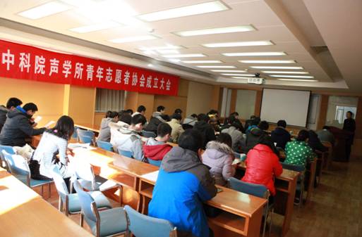 2013年11月26日上午,中科院声学所青年志愿者协会成立大会在徳昭楼218室举行。中科院北京分院综合处处长、中科院团委书记、中科院青年志愿者协会会长欧云同志,声学所党委副书记、副所长倪宏同志,声学所办公室主任程洋同志,中科院团委副书记、中科院青年志愿者协会秘书长李寒冰同志出席了大会,会议由声学所团委副书记杨波同志主持。来自声学所的30余位青年志愿者参加了成立大会。