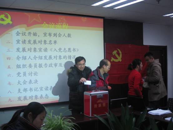 随后,参会同志就秦小伟同志的表现情况发表意见,并通过不记名投票的方式进行表决,经统计,秦小伟同志全票通过。支部书记周旭同志宣布决议,欢迎秦小伟同志加入中国共产党。秦小伟同志对自己加入中国共产党进行表态,表示在今后的工作生活中要继续努力,要维护党的形象,发挥党员的先锋带头作用。