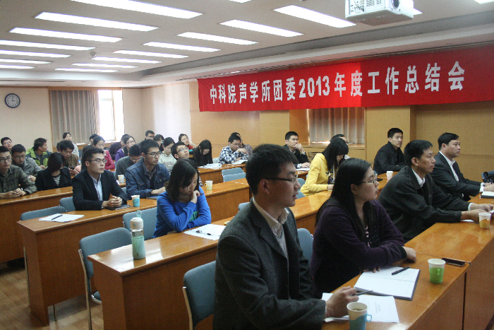 会议由所团委委员杨中臻主持。在奏唱国歌后,所团委副书记杨波作了声学所团委2013年度工作总结。杨波副书记分别从“青年思想教育工作”、“完善优化团委建设工作”、“配合所职能部门工作”、“参加院团委及兄弟院所活动”、“所内举办各类活动”、“指导所研究生会的工作”等方面对团委过去一年工作积累的经验与存在的不足作了全面的总结,提出了2014年度的工作重点和改进措施,表示团委将继续依托各个团支部,紧密联系研究生会和各社团、协会,继续为职工和青年学生创造一个好的平台,扎实完成好各项工作。围绕今年“改革奋进”的工作主题,结合纪念建所50周年系列活动,团委将以创新引领工作方向,积极配合所职能部门完成各项工作。