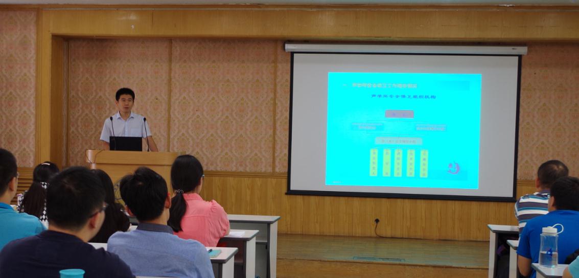 随后,办公室主管安全工作的郑春见老师就声学所安全知识给大家进行了培训教育。郑老师在介绍了声学所安全管理方针后,对声学所科研生产安全,消防安全,交通安全等方面进行了详细讲解。在讲解过程中,郑老师不断用身边的实例给同学们敲响警钟,让“安全责任重于泰山”这一理念深入人心。经过讲解,提高了大家的安全防范意识和应急处理能力。